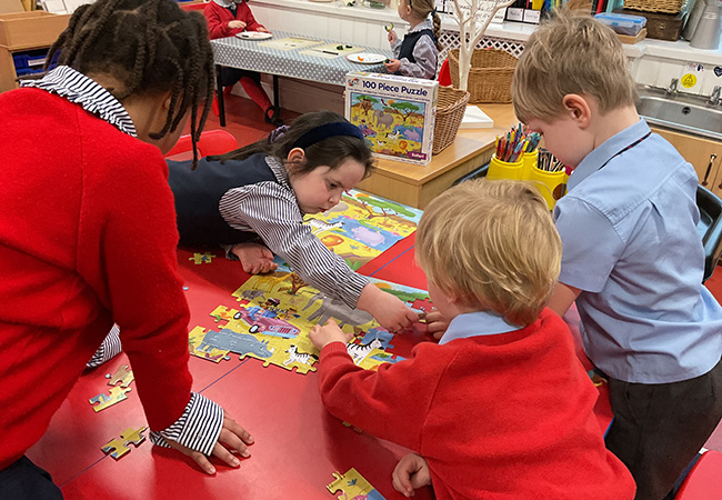 Later in the term, our children immersed themselves in the familiar tale of Little Red Riding Hood, using it as a springboard for a wide range of imaginative and purposeful learning. Through thoughtful discussion, they compared the characters of Red and the Wolf, considering their actions, motives and how each might be perceived. Using the Tales Toolkit approach, the children began to map out story structures with increasing independence, developing their confidence as young storytellers.