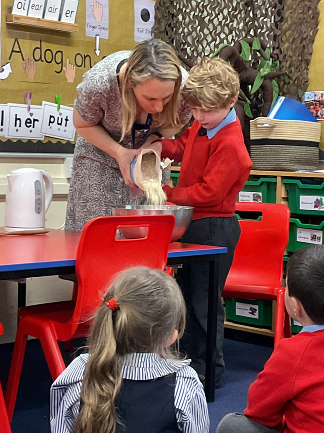 Creativity flowed across the curriculum as the children explored herbs to create a “sleeping potion” for the Wolf, combining sensory exploration with imaginative play. They also applied their mathematical understanding by designing a cosy Number Bond to 10 quilt, carefully considering how numbers work together to make ten in a meaningful and engaging context.